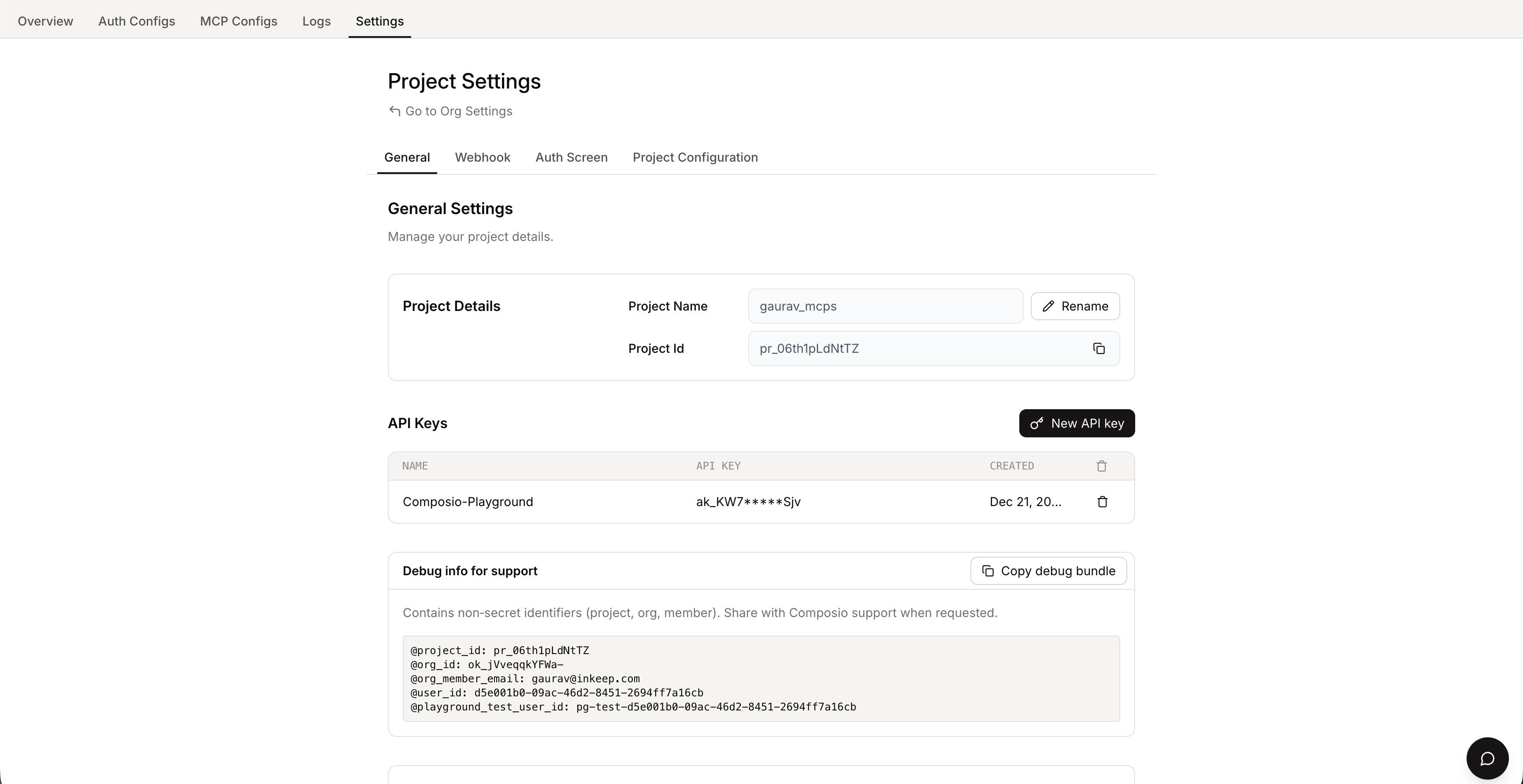 After creating a new organization and then a new project, navigate to the MCP configurations section and create configs for the MCP servers you want to use.